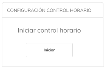 Una vez activado el módulo, deberá iniciar el sistema de control horario. Para ello, acceda a la solapa “Control horario ” y haga clic en el botón “Iniciar ” que encontrará dentro del widget “Configuración control horario”.